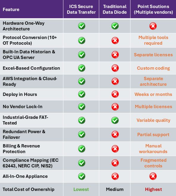 ICS/OT Secure Data Transfer is not just a data diode. It's a comprehensive OT/IT data platform.